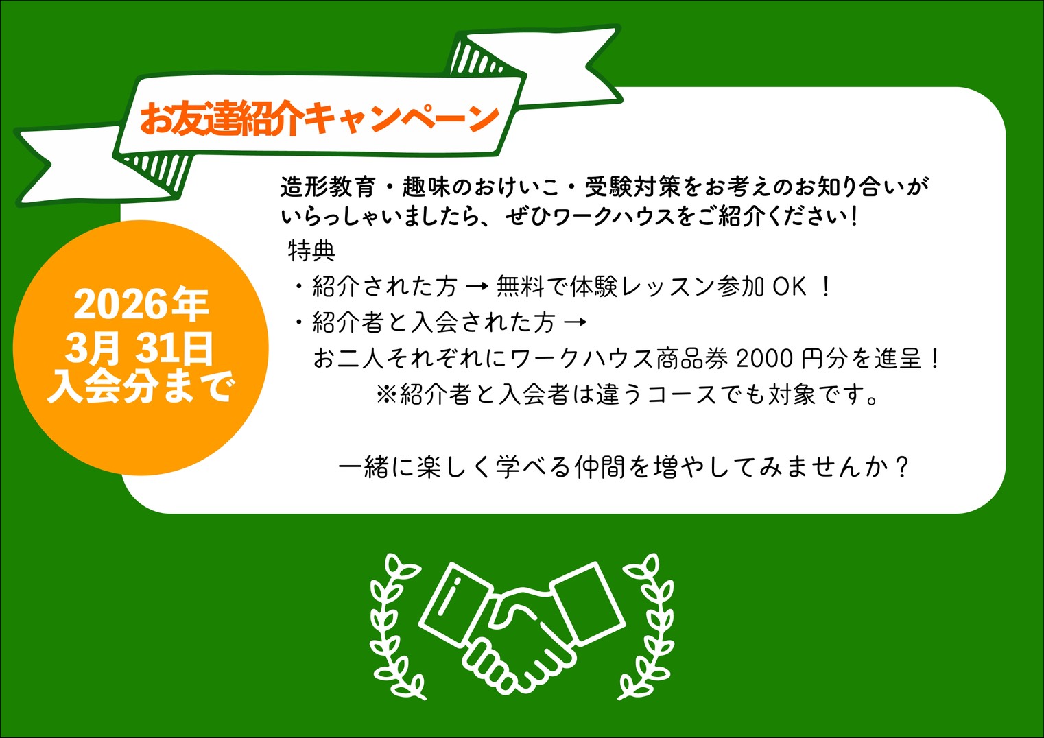 2026年3月31日まで!お友達紹介キャンペーンを実施します♪